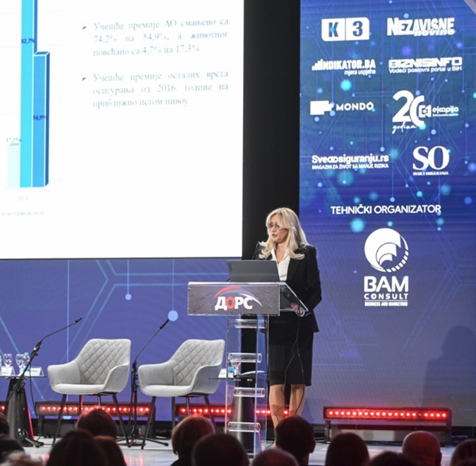 Uvodno izlaganje sa temom: Tržište sektor osiguranja u Republici Srpskoj – aktuelno stanje i trendovi održala je Draženka Janjanin, direktor Agencije za osiguranje Republike Srpske, a kojim je stručni dio Konferencije bio i otvoren. Direktorica Janjanin je predstavila ključne pokazatelje tržišta osiguranja, rast premije, razvoj novih proizvoda i procese digitalne transformacije u sektoru osiguranja.